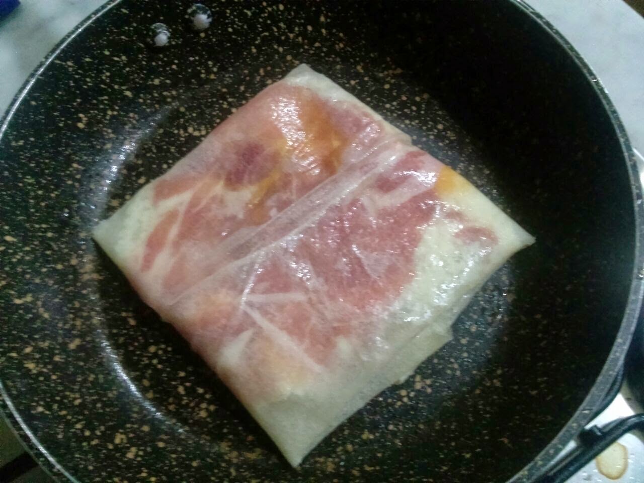 Stendete il brick e ponete al centro la fetta di prosciutto piegata in due. Grattate il provolone e formate un cerchio sul prosciutto. Ponete al centro l'uovo facendo attenzione a non farlocolare.